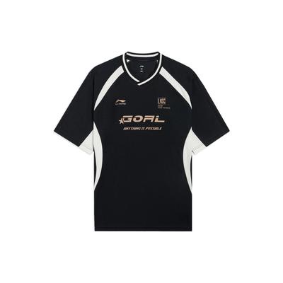 Li Ning Color Block Letter Print Casual T-Shirt Unisex Tops Black ATSSA91-3