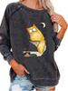 Female Oversized Sweatshirt Spring/Fall Fashion Cat Print Top Women's Pullover Sweatshirt