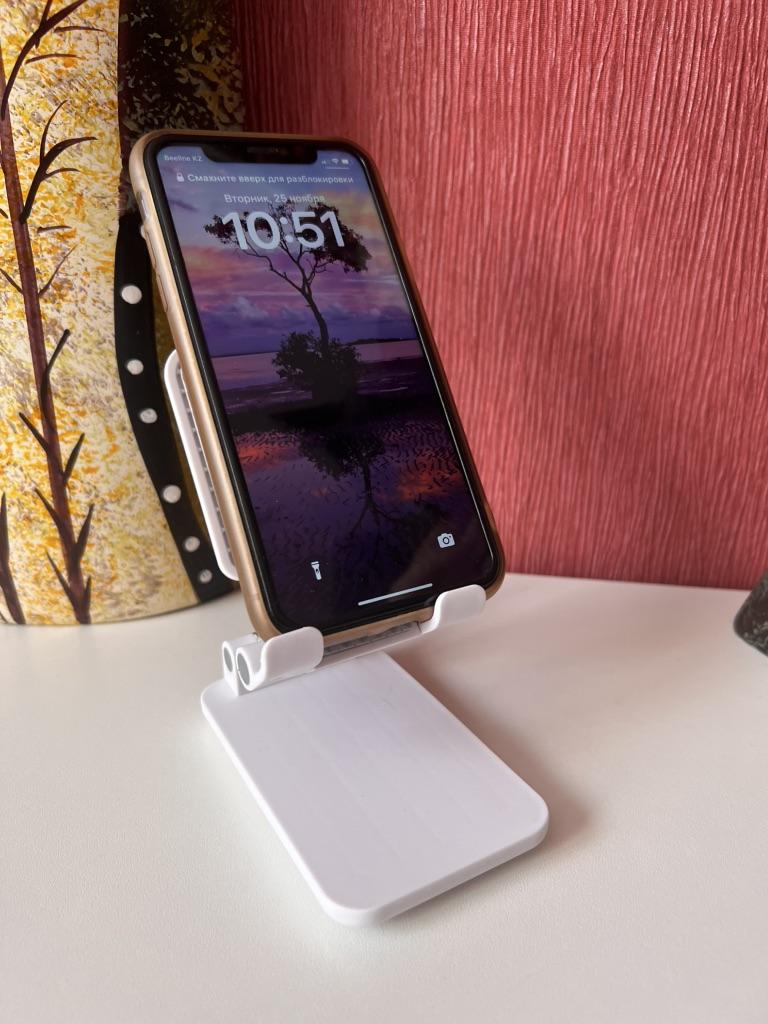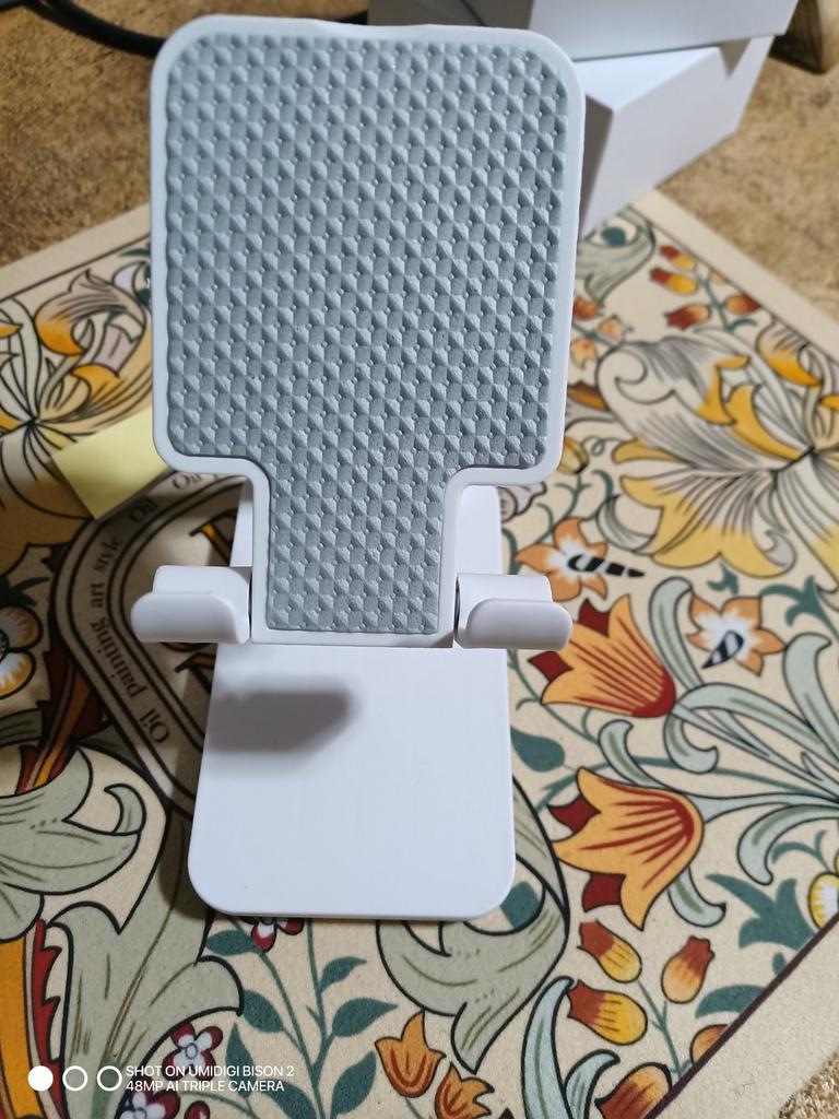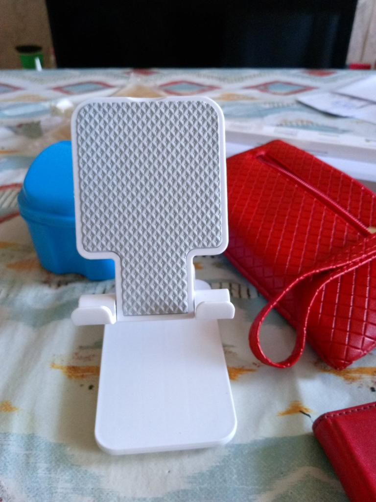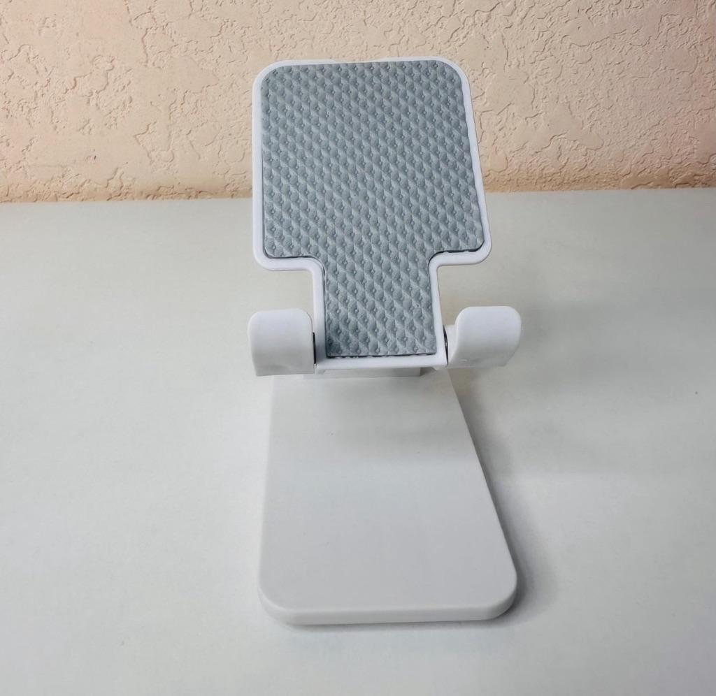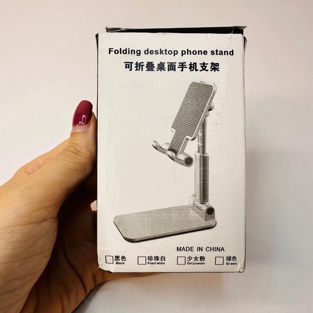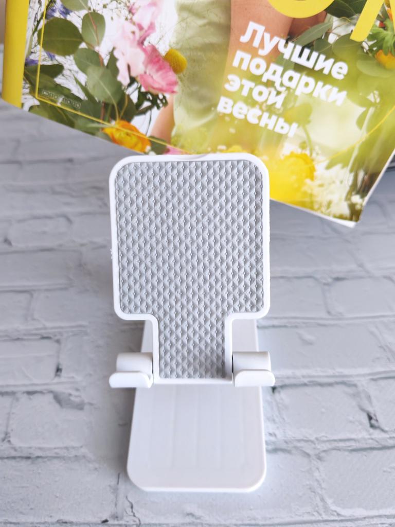 Universal Desktop Stand for Phone and Tablet – Convenient, Stable and Practical This table stand is simply a lifesaver! It fits all my phones and tablets, including iPhone and iPad, and the foldable design saves space when not in use. The silicone pad really works and prevents slipping and scratches, so you can rest assured that the device is protected.. What I love most is how stable it is – it really frees up the hands and allows you to watch movies, read emails, or even record video in complete comfort. The increased height is just right for the neck and prevents pain, which is a huge bonus for work and rest.. Very easy to use and organize, and very durable. Highly recommend to anyone who spends a lot of time with their phone or tablet!