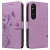 For Sony Xperia 1 VI PU Leather Cases Flower Pattern Wallet Stand Phone Cover with Strap