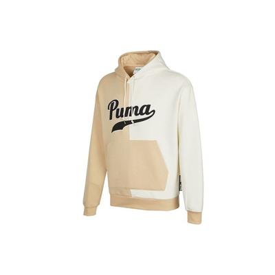 Puma Color Block Letter Hoodie Women Sweatshirt Beige 625819-87