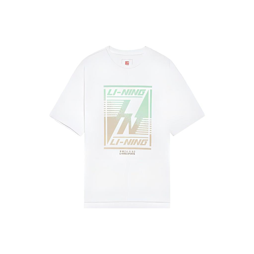Li Ning Pattern Printed Loose Round Neck Short Sleeve T-Shirt Men Tops White AHSS127-1