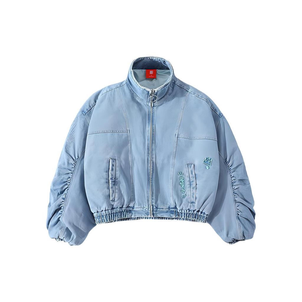 Li Ning Brand Logo Embroidered Solid Color Washable Denim Short Cotton Jacket Women Jackets Light-Denim-Blue AJMR064-2