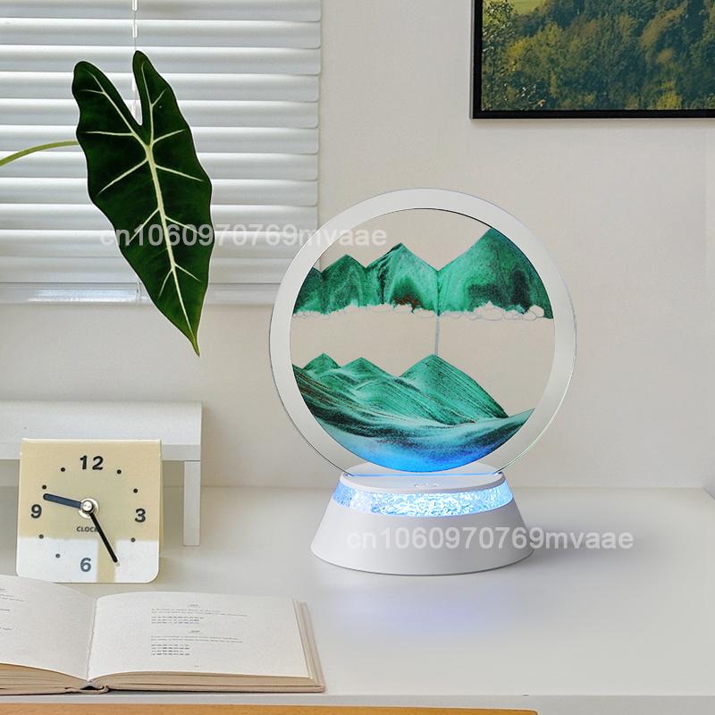 Sandscape Moving Sand Art LED Table Lamp with 7 Color Quicksand Night Light 3D Hourglass Bedside Lamp Office Home Decor Gifts