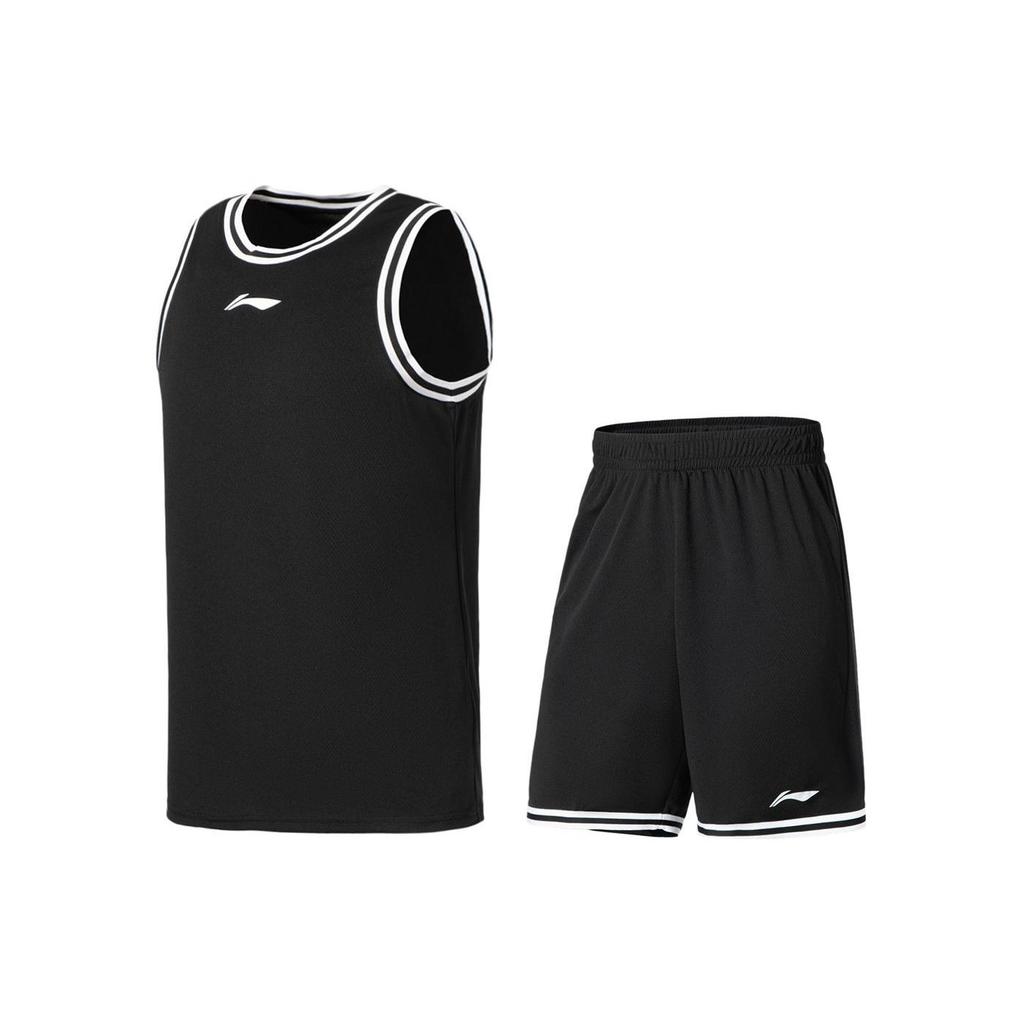 Li Ning Basketball Series Sleeveless Graphic Print Vest And Mid-Waist Elastic Shorts Casual Sports Set Men Sets Black Black-And-White AATU047-3