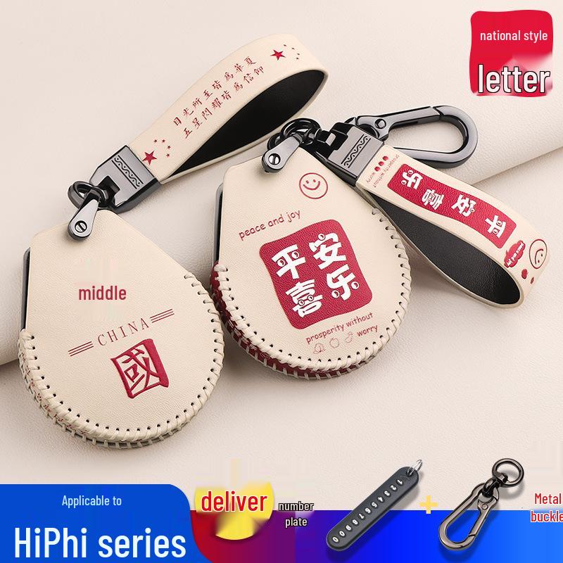 HiPhi X Car Key Case: Hand-Stitched Leather Cartoon Bag with Fashionable Buckle