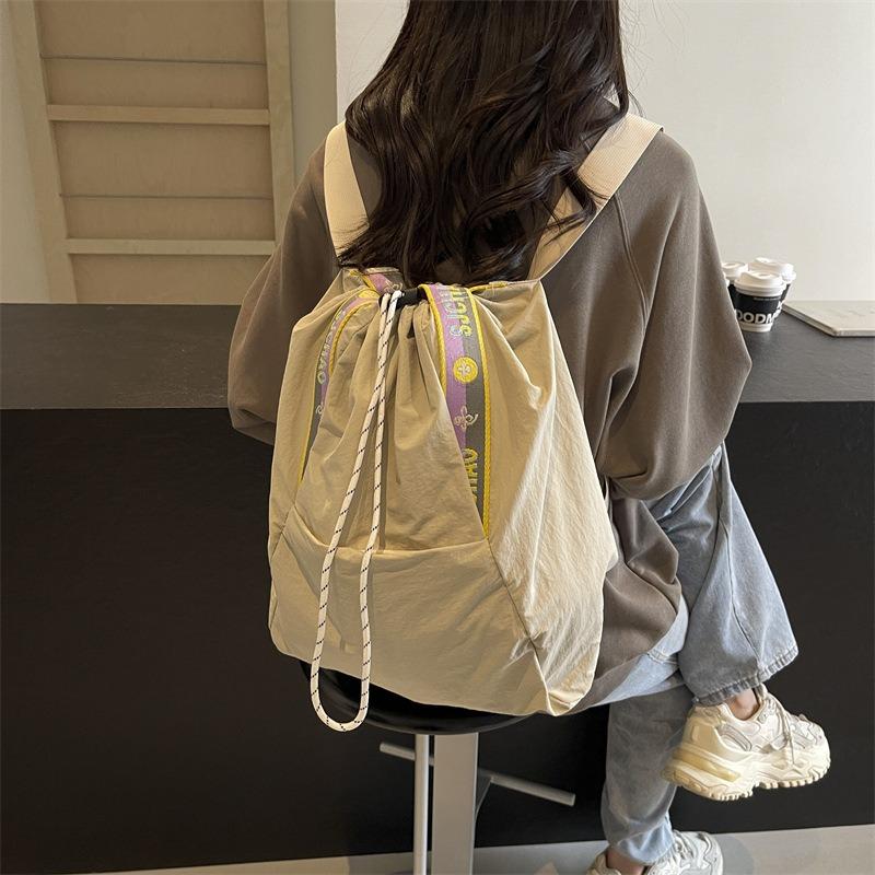 New Casual Nylon Drawstring Backpack Campus Versatile Sports Satchel Large Capacity Shoulder Tote Bag