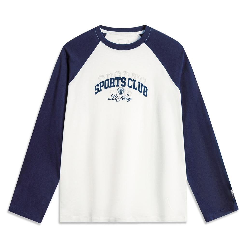 Li-Ning Sports Lifestyle Series Casual Letter Print Round Neck Long Sleeve T-Shirt Women T-Shirts Off-White Navy-Blue AHSV010-1