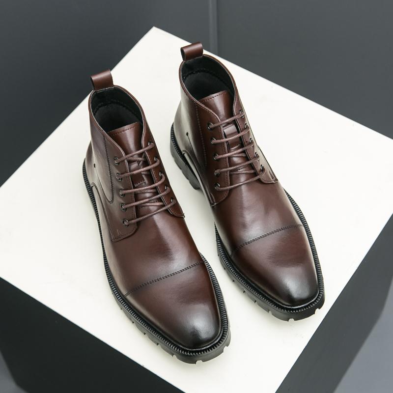 Fashion Men Fashion Boots Black Brown Short Training Boots Lace Up Business High Quality Chelsea Boots Size 38-45 Men Boots