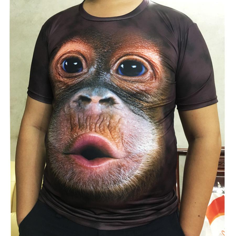 Men's Funny Animal Orangutan Face Graphic 3D Print Short Sleeve T-shirts Summer Round Neck Fashionable Casual T-shirts