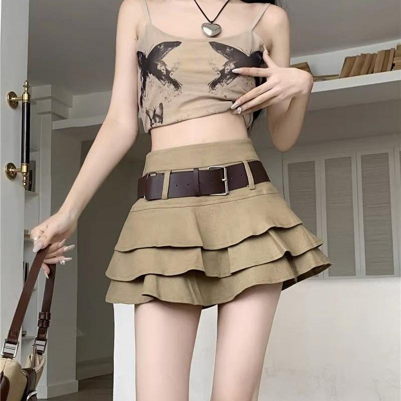 Women's Denim Mini Skirt Y2K Style Vintage Ruffled Shorts Skirt High Waist Korean Fashion Clothing