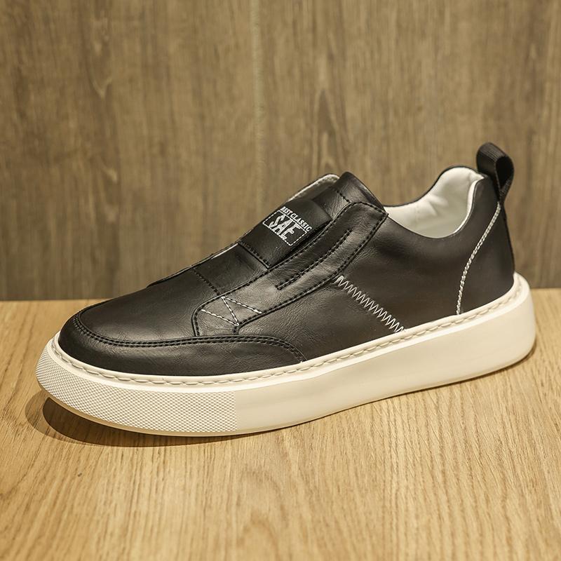 Fashion Men's Thick Sole Casual Shoes 39-44 Smooth Leather Slip-on Design No Laces Side Fine Stitching Decoration for Casual Versatile
