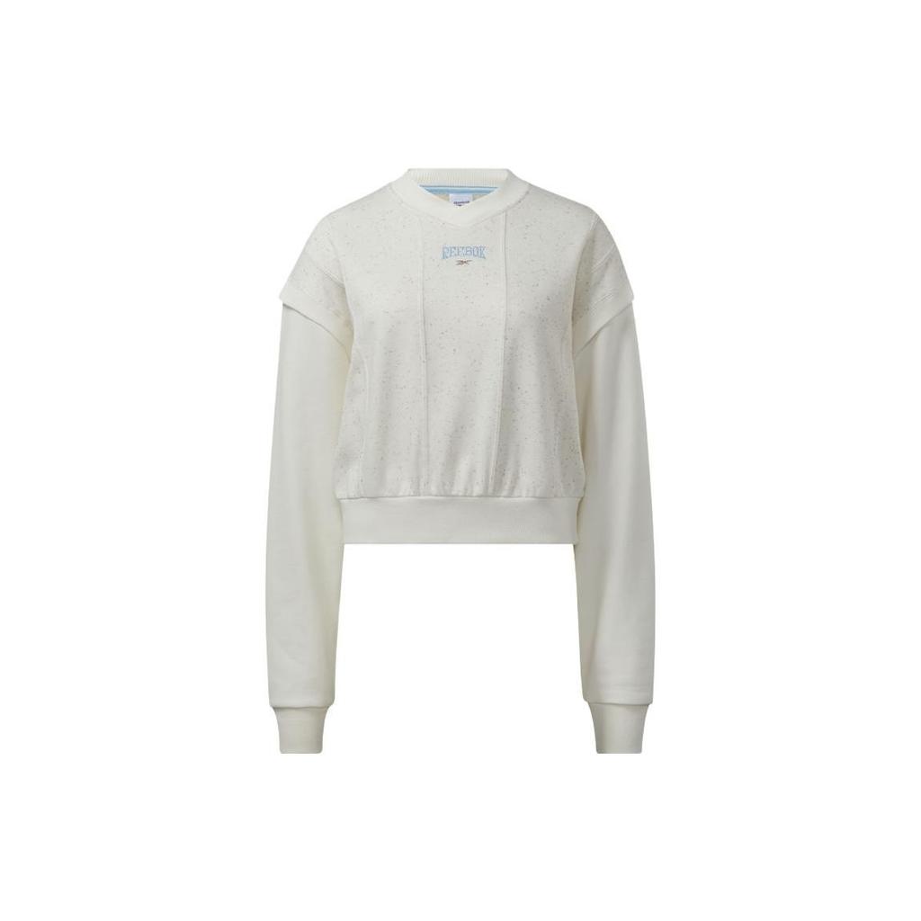 Reebok Solid Color Crew Neck Casual Pullover Sweatshirt Women Sweatshirts White HT7856