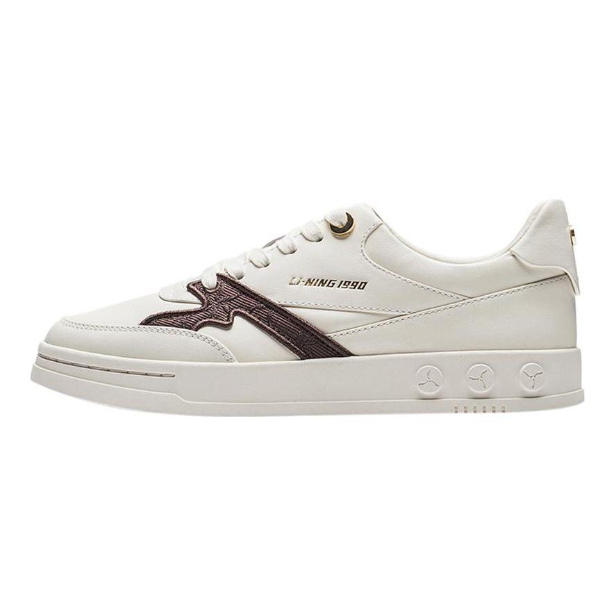 Li-Ning 1990 Non-Slip Comfortable Rebound Shock Absorption Low-Top Sneakers Women Sneakers White Brown ALHT066-3