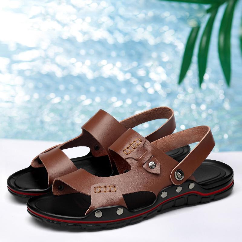 Fashion Summer New Men Sandals Black Brown Flat Heels Lightweight and Comfortable Beach Sandals Slippers British Gentlemen Sandals Large
