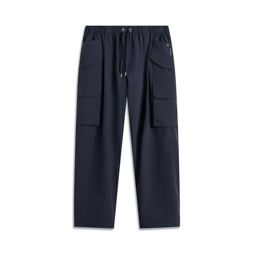 Li Ning Sports Lifestyle Series Solid Color Mid Waist Drawstring Breathable Versatile Loose Fit Sports Long Pants Men Bottoms Deep-Blue AYKV107-2