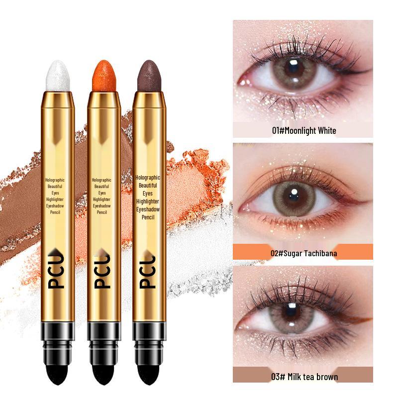 PCU Double-Ended High-Shine Eyeliner & Eyeshadow Stick - Milk Tea Brown, Lazy Diamond, Brightening One-Swipe Formula