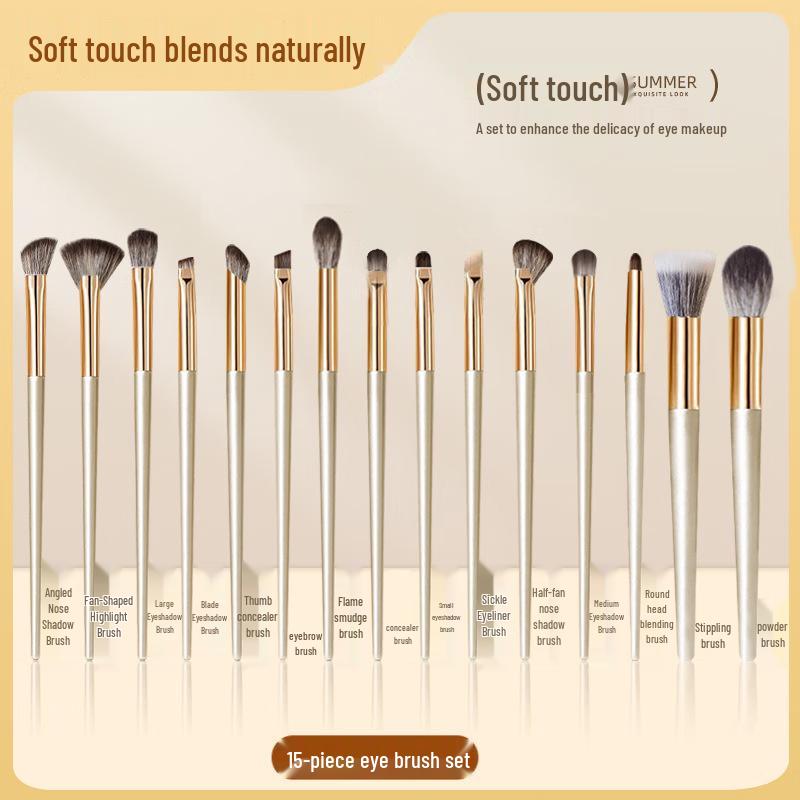 15-Piece Gold Makeup Brush Set: Includes Eyebrow, Eyeshadow, and Powder Brushes