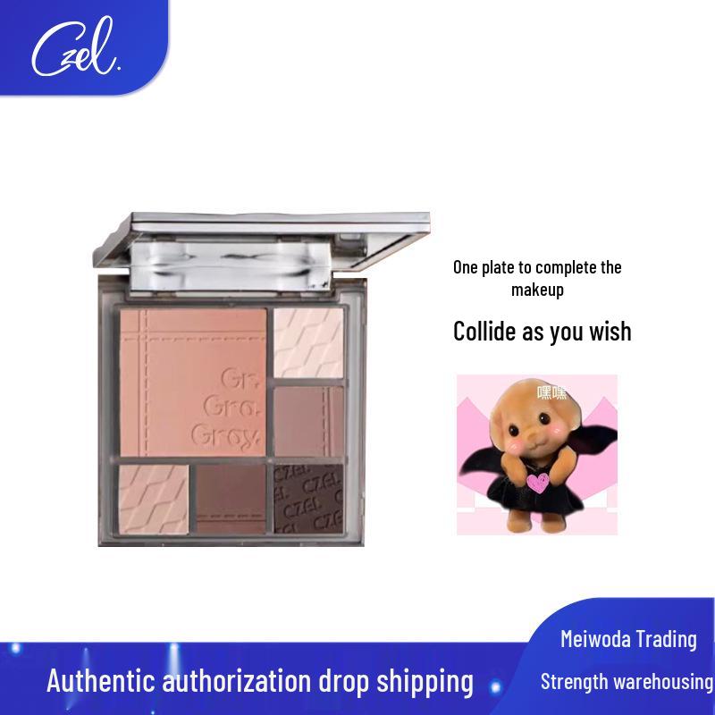 CZEL Earth Tone Eyeshadow & Blush Palette: Gray-Pink Gradient, Matte, Light Makeup All-in-One