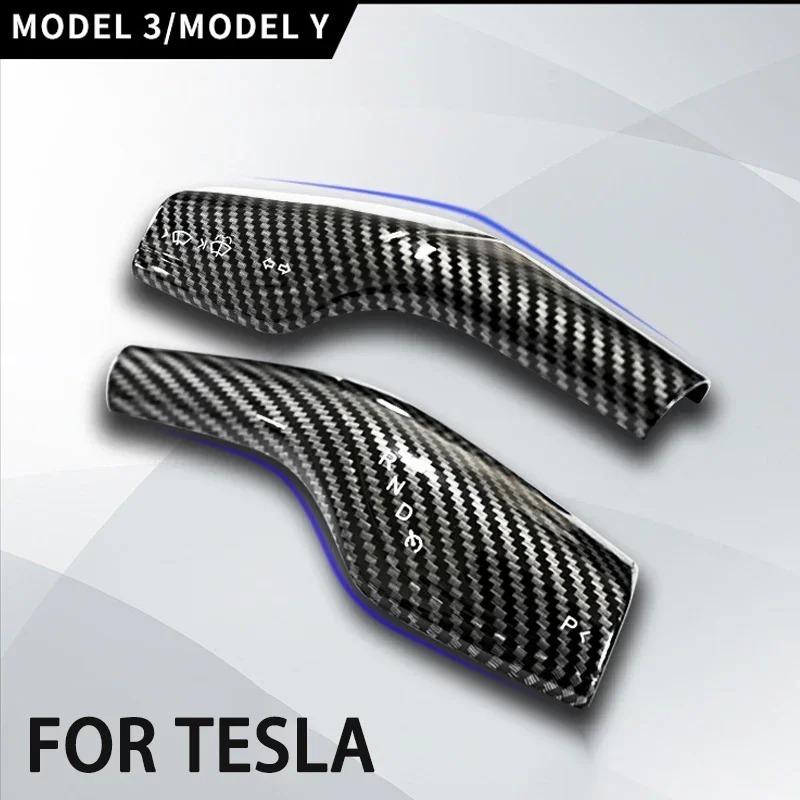 For Tesla Model 3 Y Gear Shift Cover Steering Lever Handle Protection Shifter Shell Carbon Fiber Shift Knob Cover Accessories