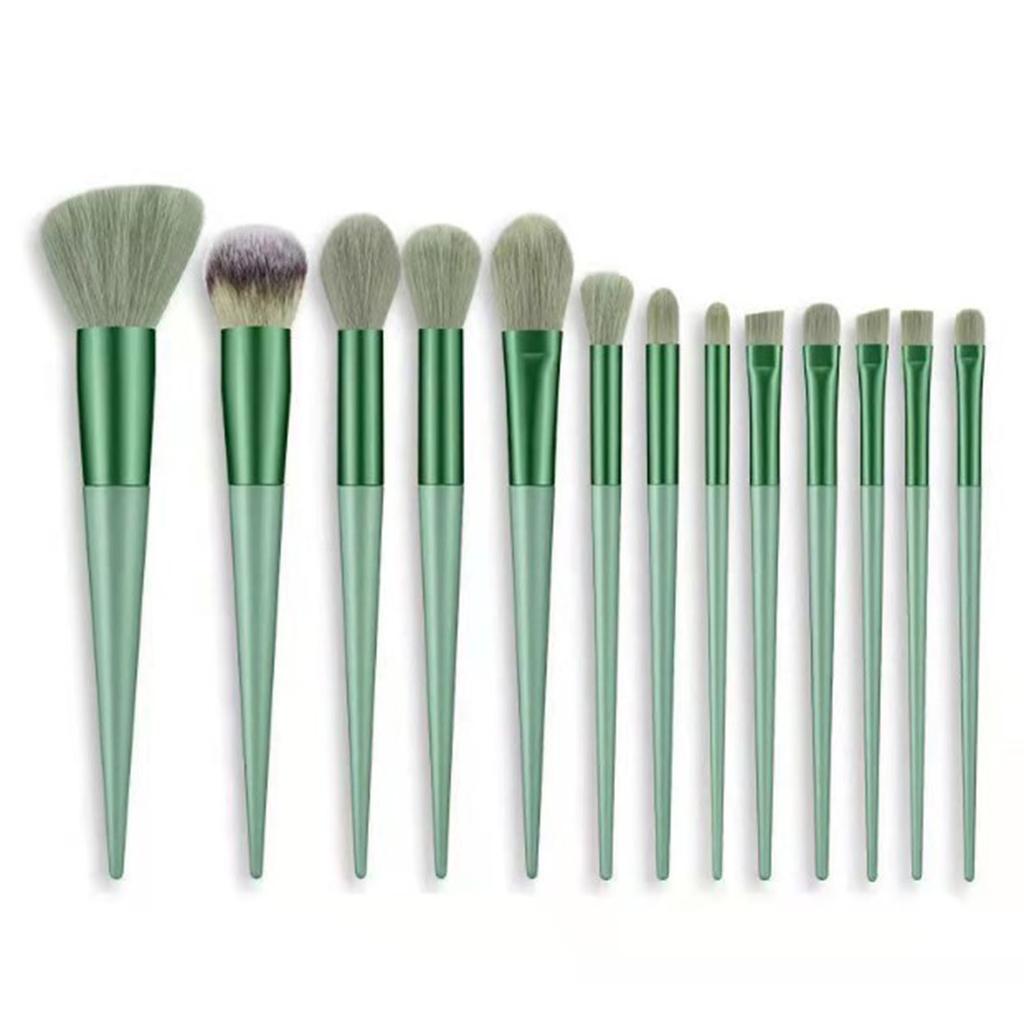 Makeup Brushes 13pcs Green Skin Friendly Bristles Washable Reusable Portable Storage Bag Professional Cosmetic Brushes