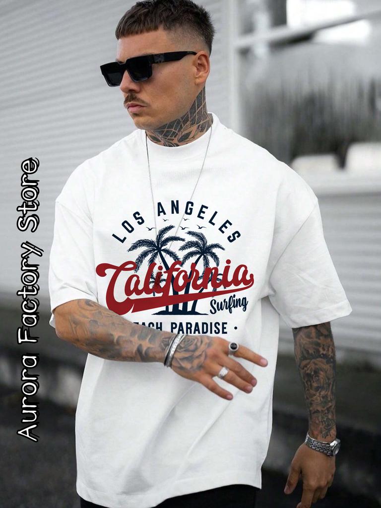 Summer Men Cotton T-Shirt CALIFORNIA Printing Tops Tees Male Fashion Beach Camiseta Short Sleeve Clothing Harajuku Streetwear