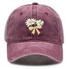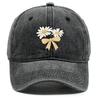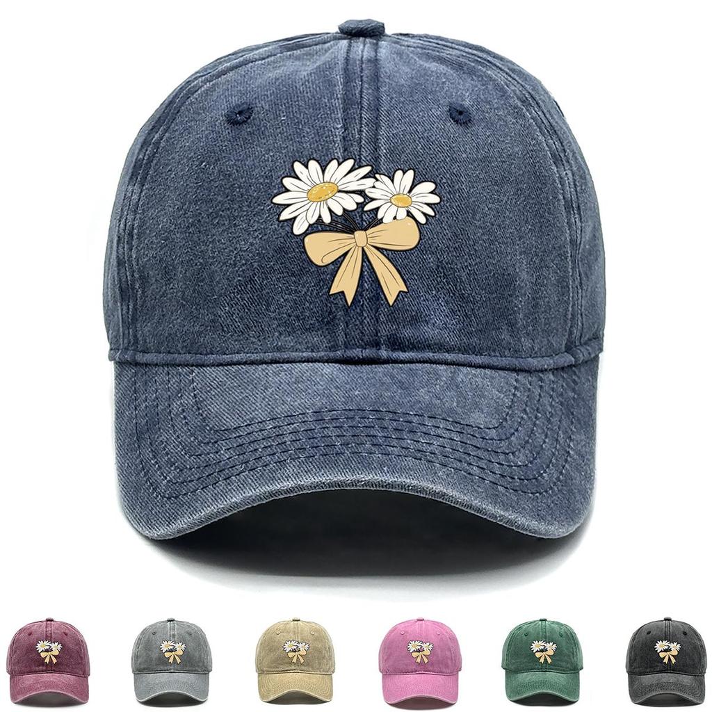 Daisy Bowknot Print Snapback Baseball Hat, Flower Trucker Hat Sun Protective Solid Vintage Casual Adjustable Baseball Cap