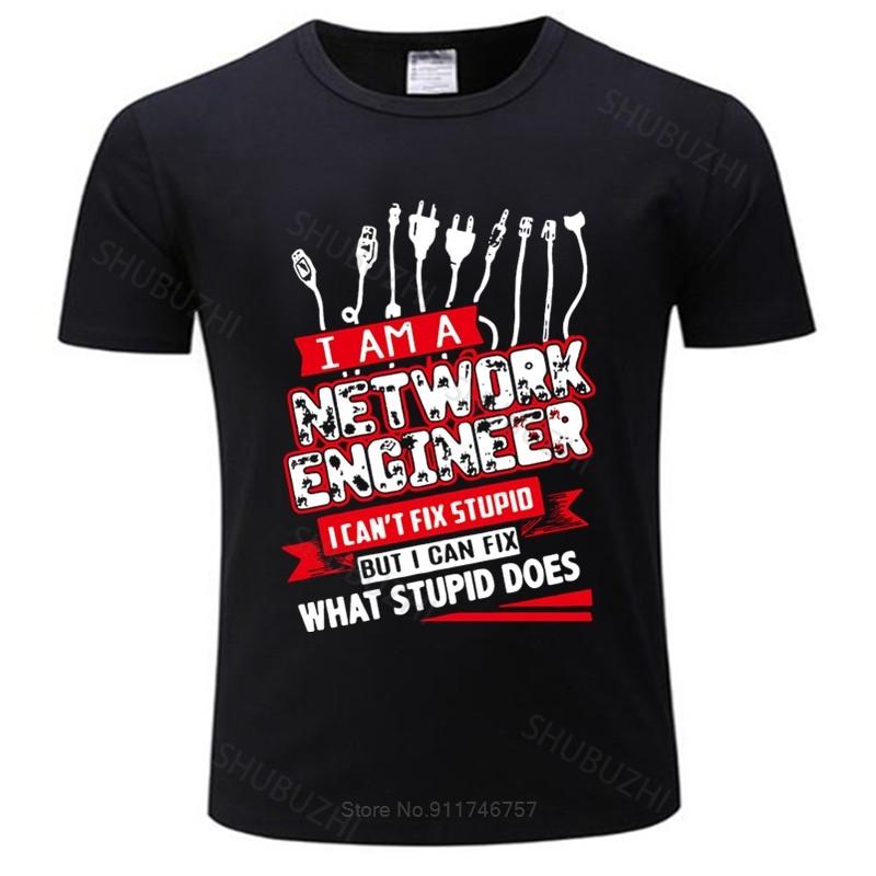 New Fashion T-shirt Men Crew Neck Tees Men Network Engineer Cant Fix Stupid O-Neck Vintage Geek Male Cotton Tee-shirt