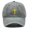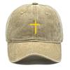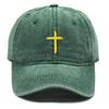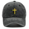 Golden Crucifix Print Snapback Sun Hat, Flat Cap Hip Hop Fit Sun Protection Distressed Adjustable Baseball Hat