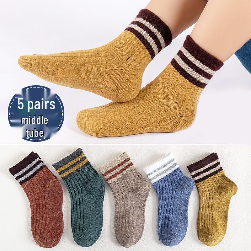 Preppy Mid-Calf Cotton Socks: Cute, Breathable, Two-Stripe Design for Boys & Girls, Perfect for Spring & Autumn