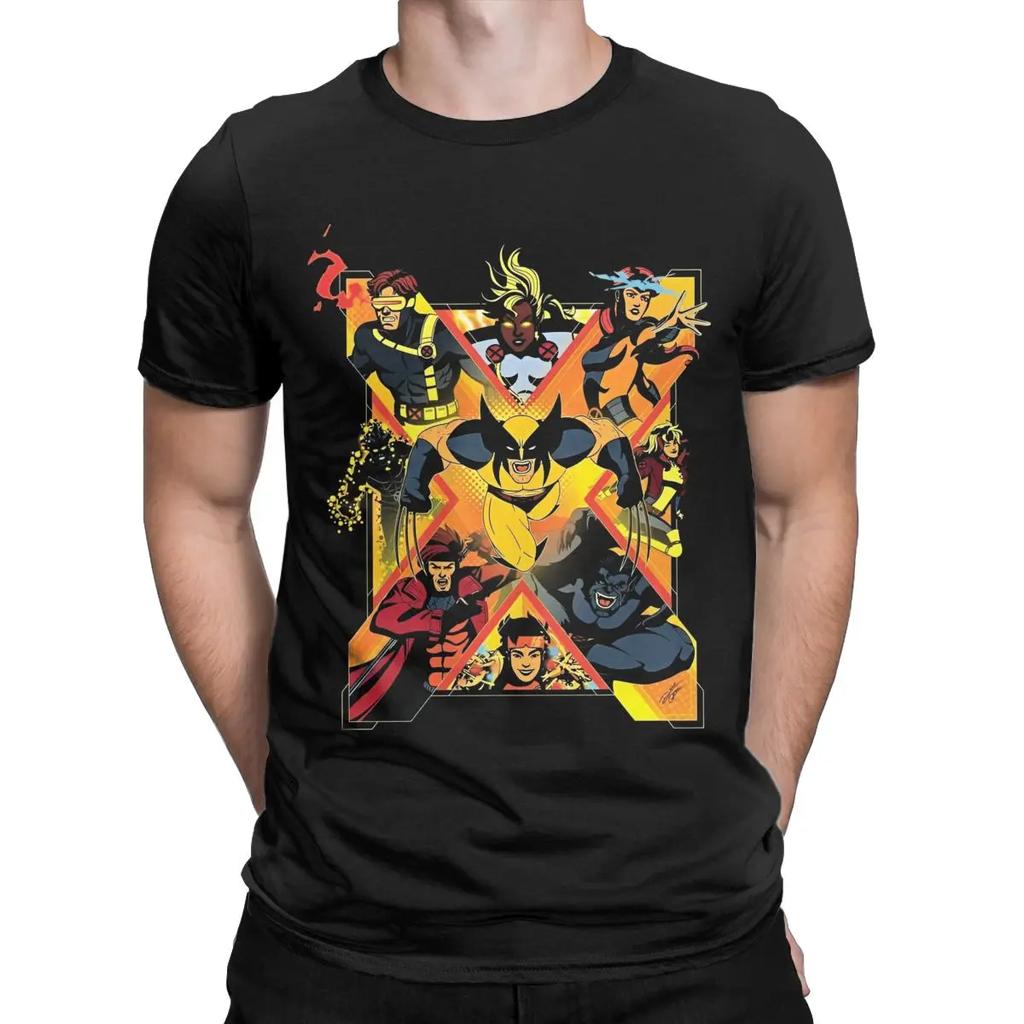 Men T-Shirt X-Men Wolverine Hipster 100% Cotton Tee Short Sleeve Xmen Group T Shirts Round Collar Merchandise Graphic