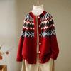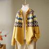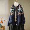 Women's Retro Jacquard Crew Neck Loose Knit Cardigan Spring Autumn Ethnic Style Sweater Coat Top