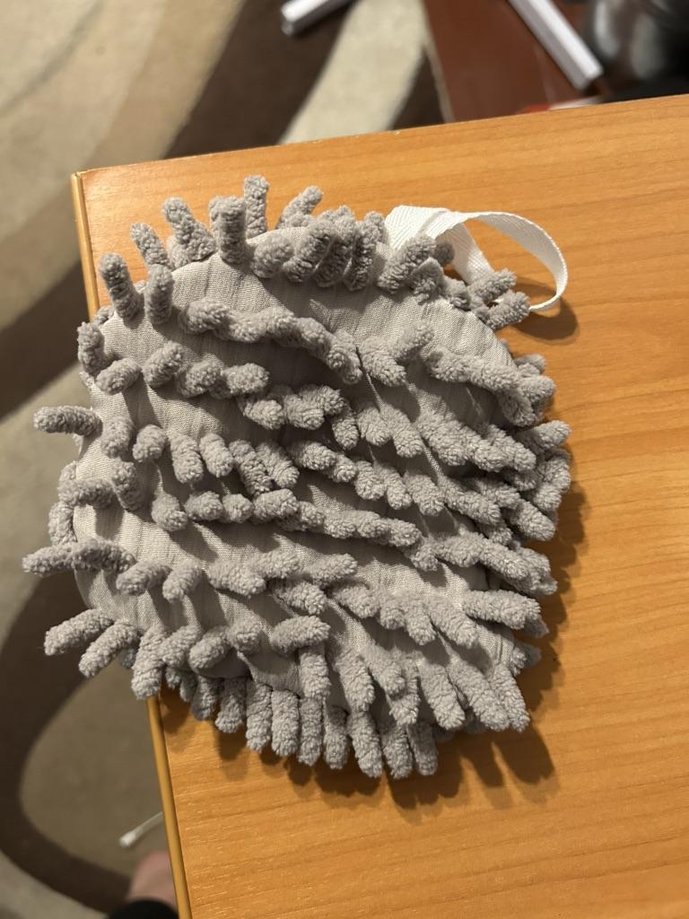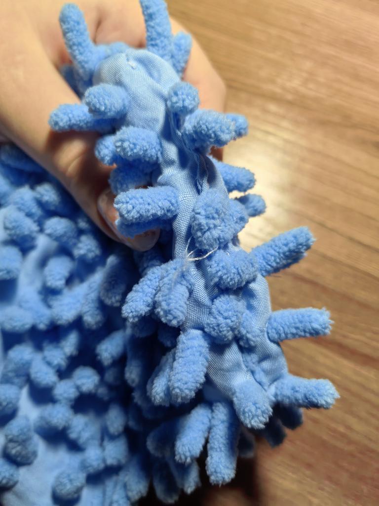 It doesn't pull on the towel, but it's just right for wiping dust off a small surface 👍 The seam is a little crookedly made, you could stuff something inside to make it more voluminous