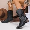 Fashion Vintage Pointed Toe High Heel Western Cowboy Boots Women 2025 Winter Comfort Side Zip Ankle Boots Metal Chain Designer Shoes