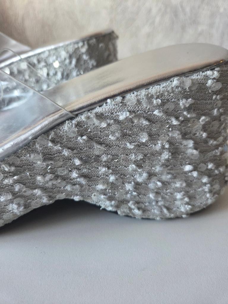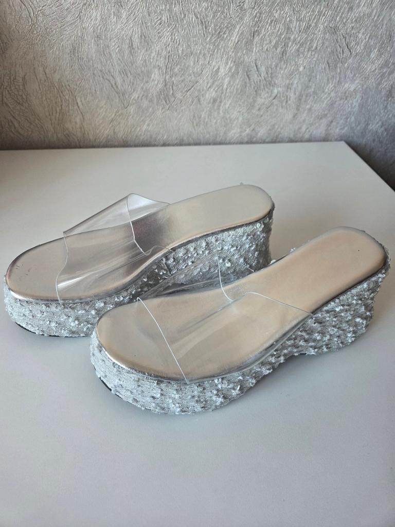 Fashion Women Shoes Sexy 13CM Super High Heels Wedges Slippers for Women Sequined Thick Bottom Open Toe Party Dress Shoe Platform Sandal