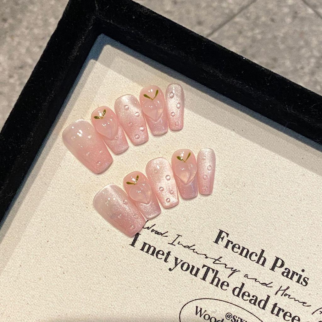 Icy Peach Girly Pink Blush Short Wearable Nail Patches