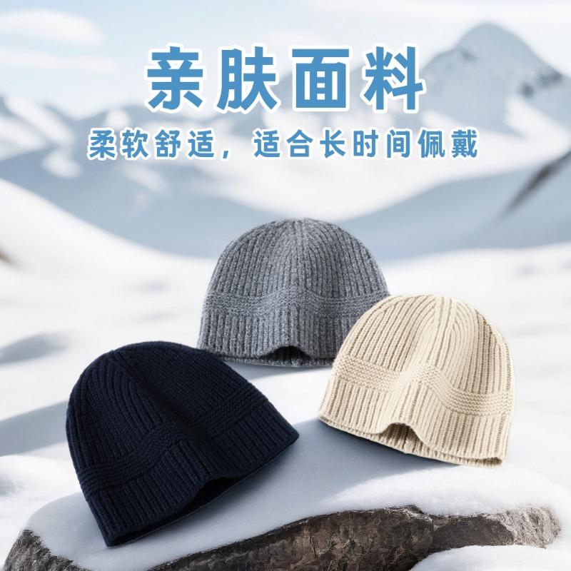 Autumn and Winter Knitted Hat Women's Big Head Circumference Warm Thickened Wool Hat Men's Outdoor Windproof Cold Hat