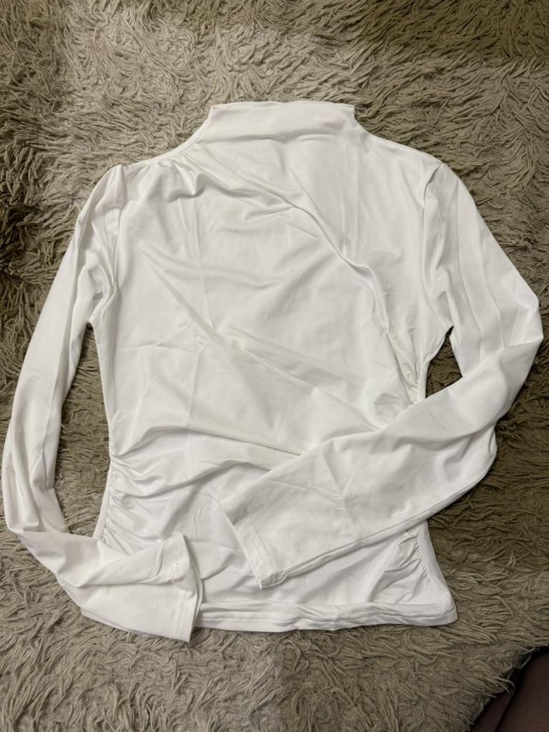 2024 High Neck Solid Color Slim-Fit Women's Long Sleeve Ruched T-Shirt