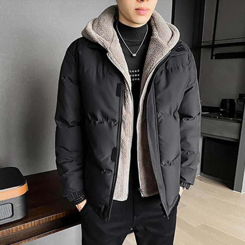 Big Yards of Men's Clothing False Two Pieces of Cotton Clothing Men's Winter Loose Thickened Rocker Velvet Cotton Jacket Hooded Cotton Coat