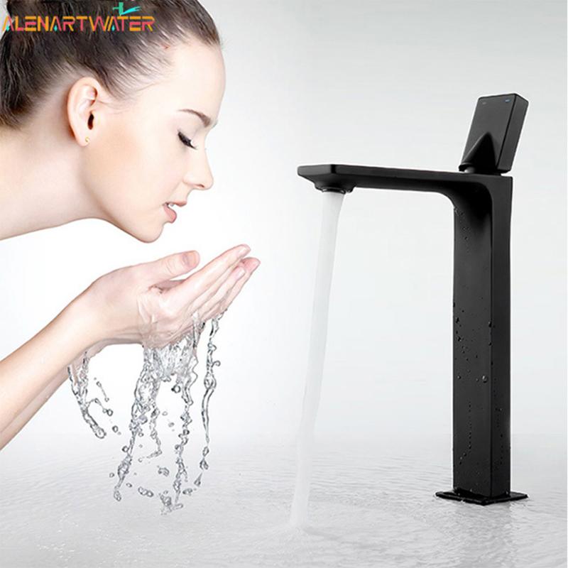 Bathroom Basin Sink Faucet Deck Mounted Square Brass Tall Mixer Single Handle Hot and Cold Water Mixer Tap