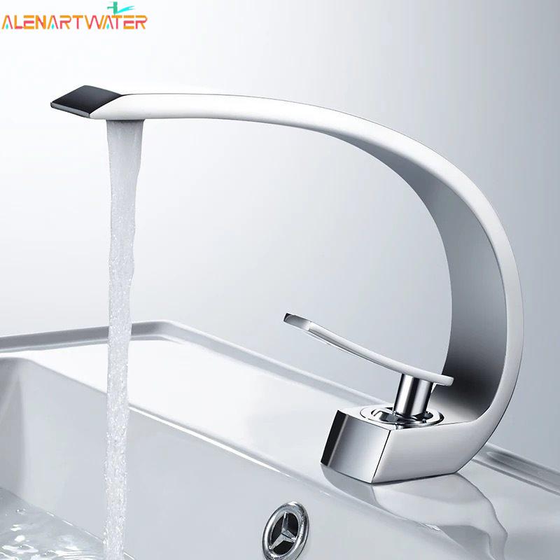 Bathroom Basin Faucet Deck Mount Washing Sink Cold and Hot Water Mixer Tap Creative Curved Mixers