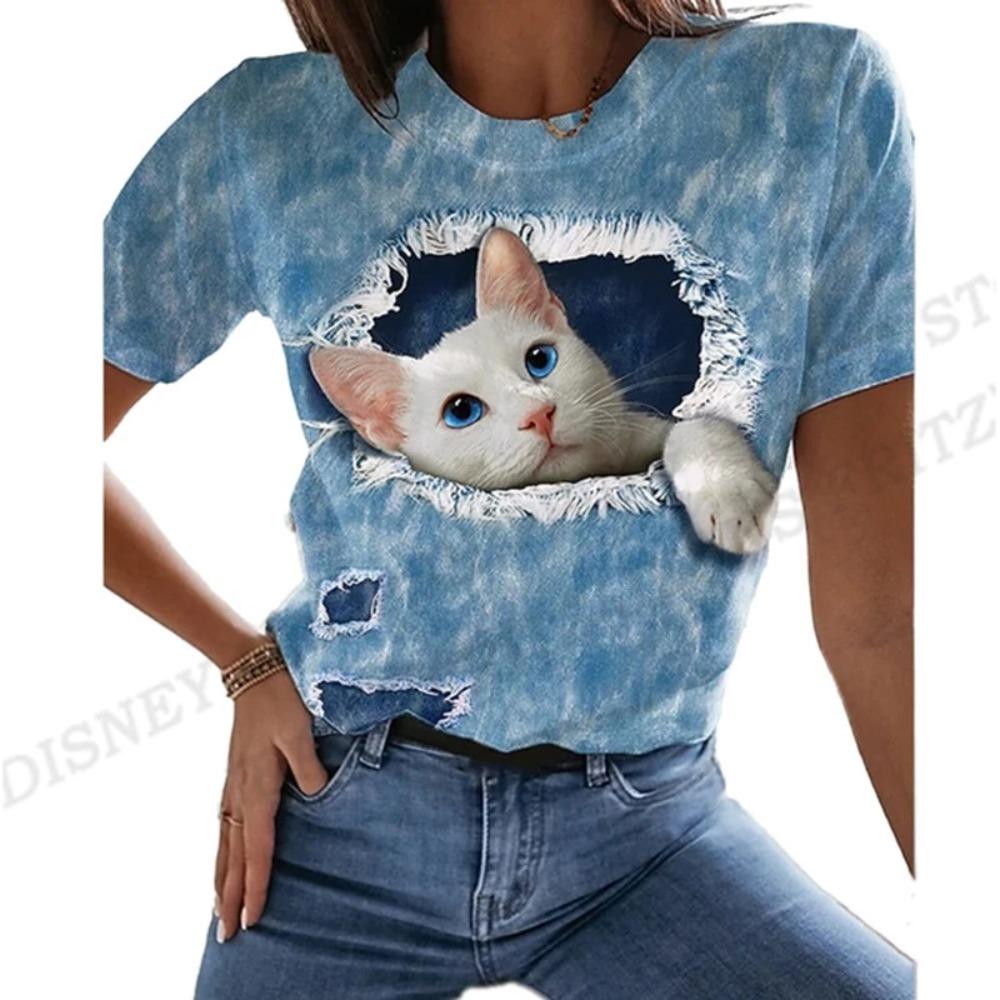 Summer Cat 3d Printing T-shirt Women's Fashion Loose Harajuku Short-sleeved Top T-shirt Suitable for Daily Casual Clothing