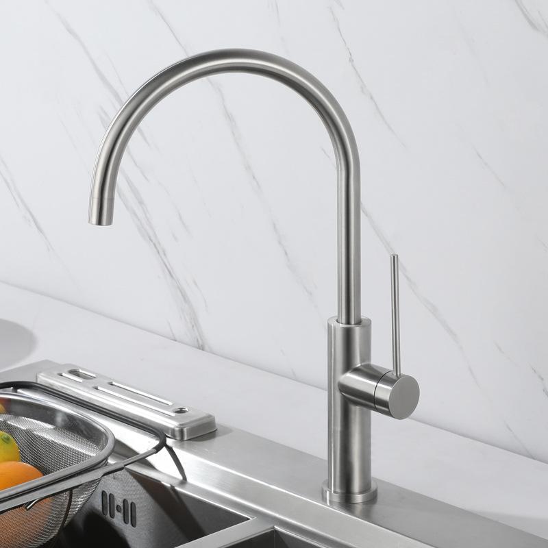 Brushed Gold 304 Stainless Steel Kitchen Sink Faucet Single Handle Cold and Hot Mixer Sink Tap Gun Gray Deck Mounted Basin Tap