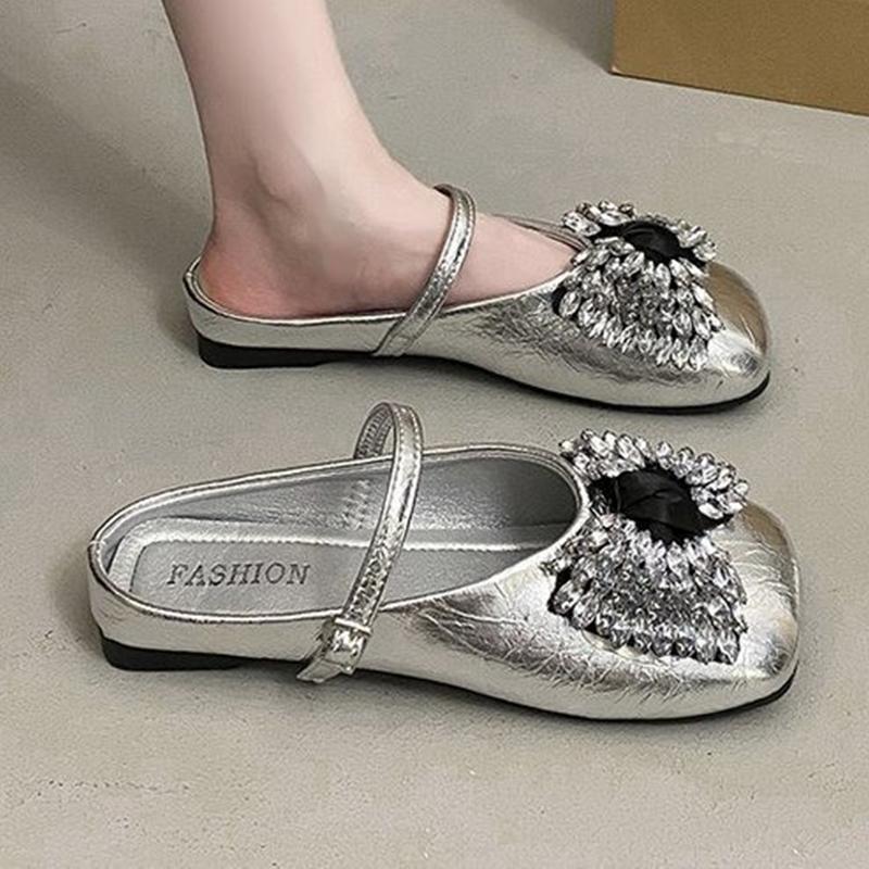 Fashion Crystal Flats Women Slippers Designer Square Toe Slingback Shoes Woman Summer Sandals 2025 Trend Brand Walking Cozy Lady Shoes
