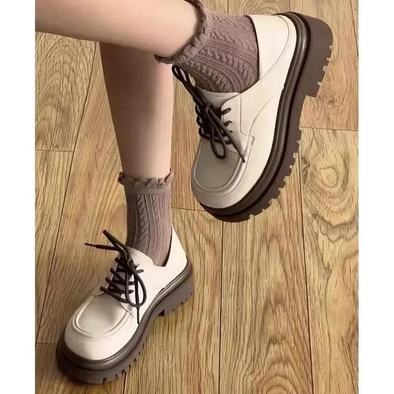 Fashion White Preppy Style Women's Flats Lace-up Thick Sole Round Head Japanese System Shoes Comfortable Rubber Upper Summer Shoes