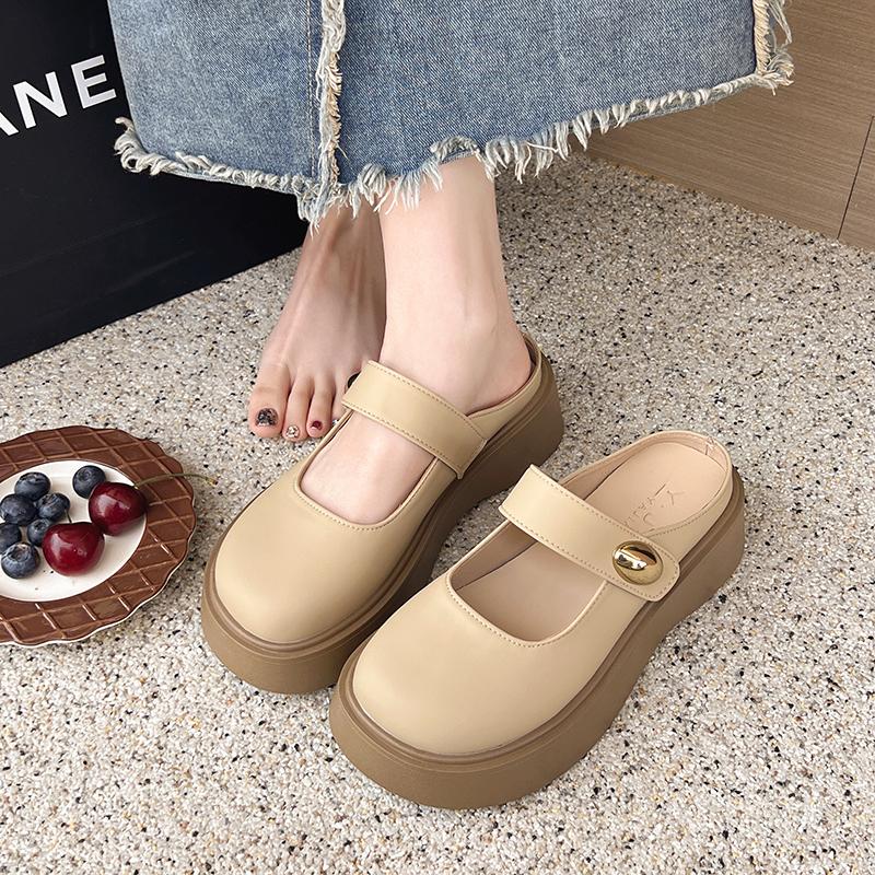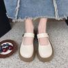 Fashion Beige Soft Leather Shoes Women Heels Mary Janes Platform Lolita Shoes Japanese Style Vintage Girls High Heel Pumps Woman Shallow