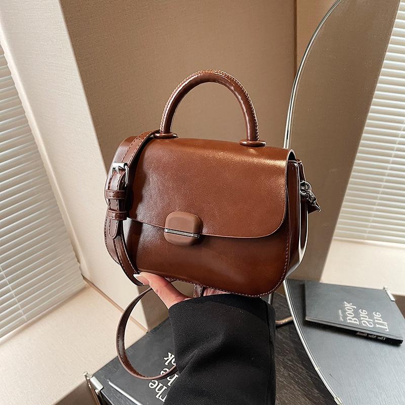 Elegant Appearance Details: This handbag features a structured silhouette with a unique metal lock detail and a textured top handle, adding a touch of sophistication. The smooth texture and classic color options make it a versatile fashion piece.