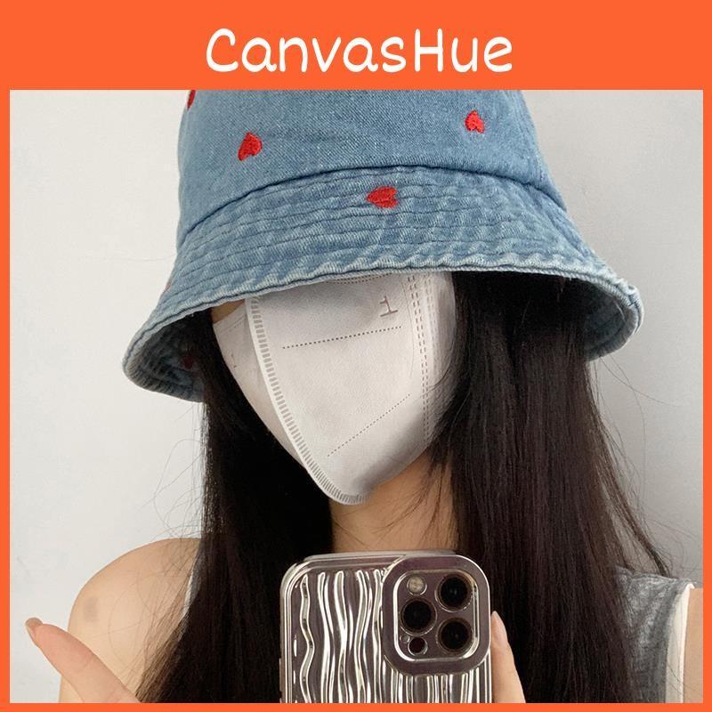 Retro Loving Heart Pattern Fisherman Hat Unisex Denim For Activities Outdoor
