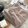 New Winter Thick Vintage Elastic Waist Straight Pants Female All Match Mink Velvet Slim Wide Leg Loose Pants Women Casual Clothing