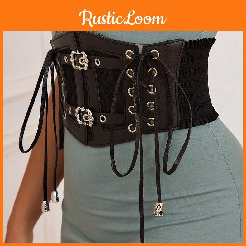 Retro Lace Embroidered Style Cummerbund Shaping Belt Metal Buckle Elastic Waist